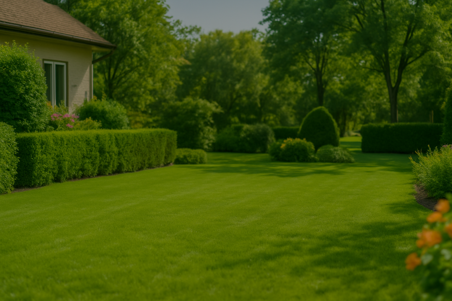 Regelmäßiges Mähen, Düngen und Belüften. Wir sorgen für einen dichten, gesunden und sattgrünen Rasen.